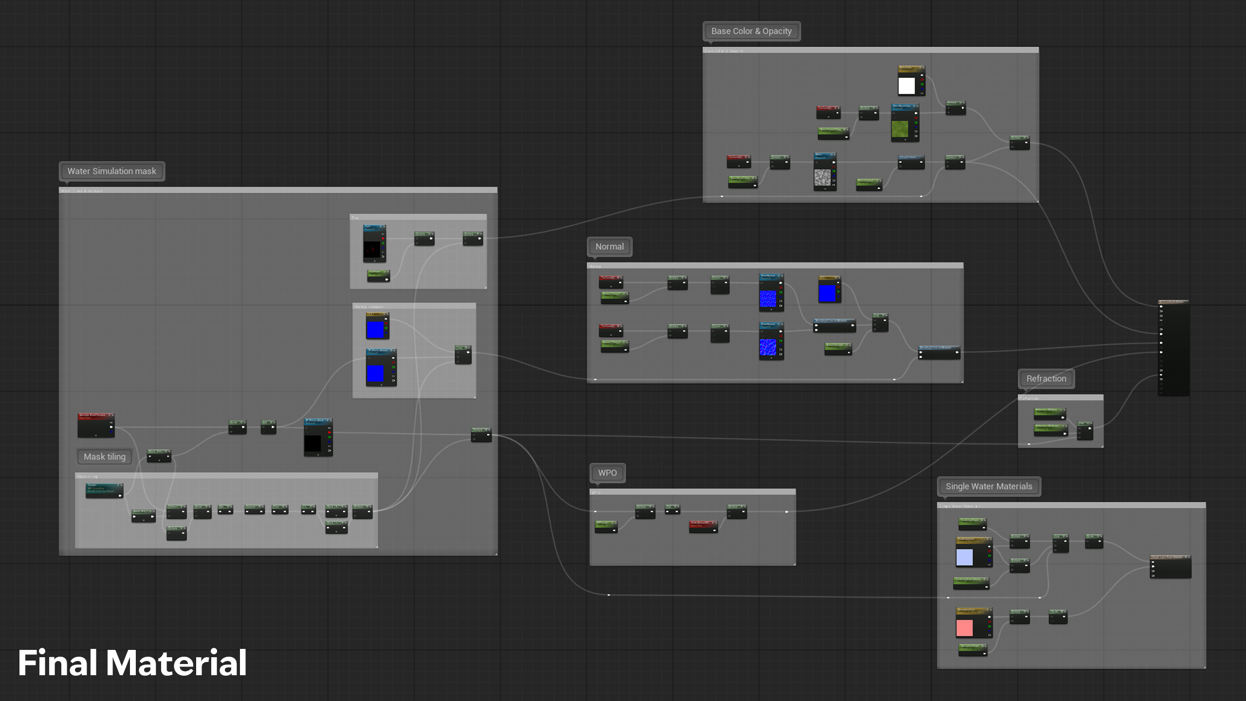 A Scene Capture Component combined with a post-process ensures pixel-perfect intersections with the water surface, providing precise and immersive visual effects.